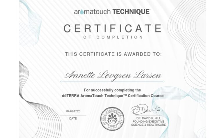 I en AromaTouch behandling bruger jeg udelukkende dōTERRAs 100 % rene og naturlige essentielle olier. En dōTERRA behandling er kendetegnet ved brugen af olier af højeste kvalitet, testet efter CPTG-standarden (Certified Pure Tested Grade). Det betyder, at alle dōTERRA olier er grundigt testet for renhed og styrke og er fri for pesticider, fyldstoffer og kunstige tilsætningsstoffer.